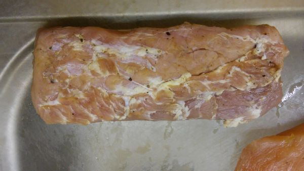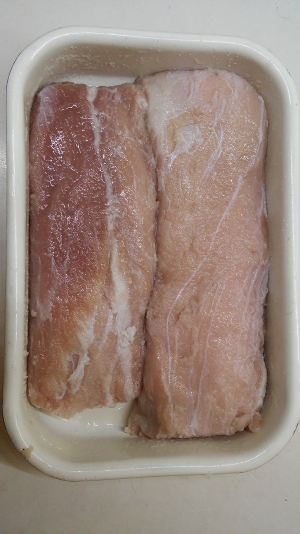 Некоторые авторы рекомендуют делать мясу соляной геноцид, засыпая мясо солью полностью или же солить в рассоле, я делать этого не советую. Как показал результат, выбранной мною концентрации вполне достаточно, чтобы натереть солью мясо полностью.