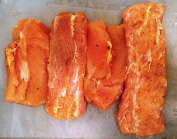 Куриное филе уже посолено, фото без соли не делал.