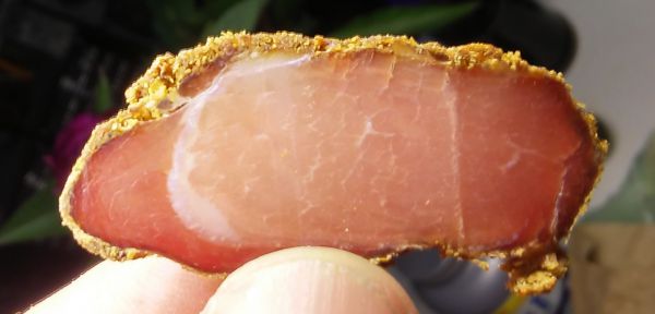 Приготовить бастурму хотел давно, выбирал между бастурмой и бреазолой, в результате выбрал бастурму, ибо проще, дешевле, и мне не очень нравится аромат итальянских специй), но поскольку не было опыта и уверенности в результате, откладывал это дело на потом, и, как оказалось, правильно что не спешил, ибо была зима, а для приготовления любого вяленого мяса очень важно выдержать постоянный температурный режим и влажность (нужна температура 13-14 С, влажность 60%, отсутствие солнечного света и сквозняков). Если эти условия не выдержать, снаружи на мясе образуется корка и оно остается внутри сырым, что, конечно же, небезопасно.