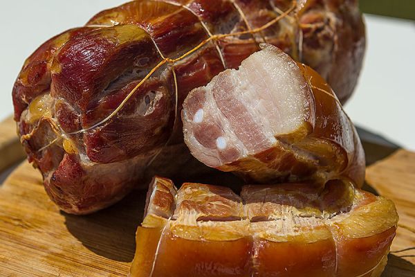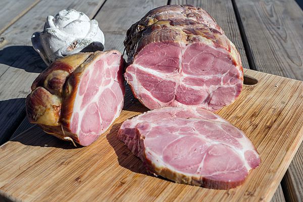 Шейка ветчинная - результат устраивает на 120 балов из 100. Сочная, яркий вкус, просолена равномерно.