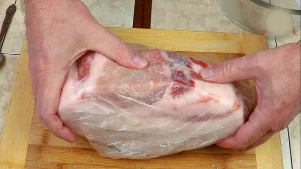 Через сутки убираю пакет с салом в холодильник на 5 дней для созревания.