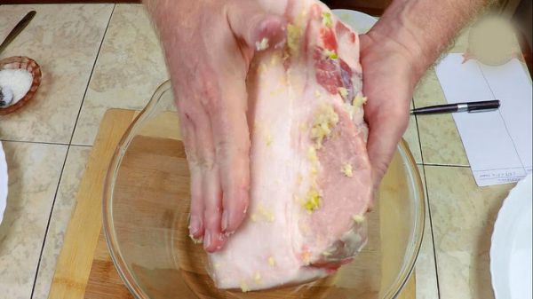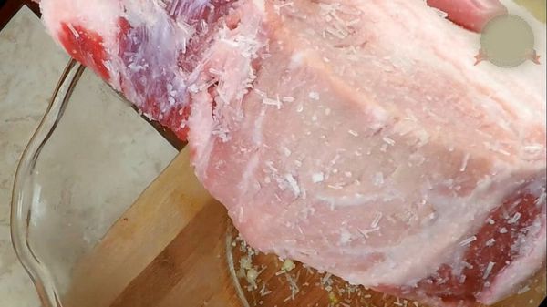 Герметично заворачиваю сало в 2 пакета и кладу на 2-2,5 часа в тёплое место при температуре 50-55 градусов ( я положил на батарею отопления). После прогрева убираю пакет с салом в холодильник на 5 дней. Перед употреблением счищаю чеснок с поверхности куска, солёное сало созрело и его можно кушать.