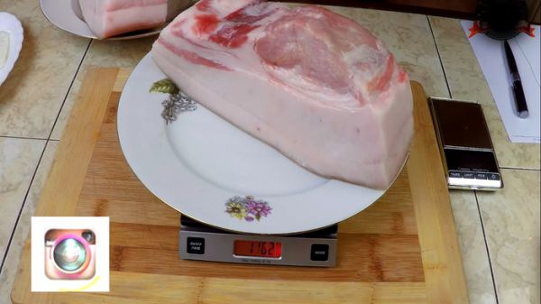 Кусок для засолки весит 1кг 165 граммов. Для него необходимо соли 2,5% от его веса. Это