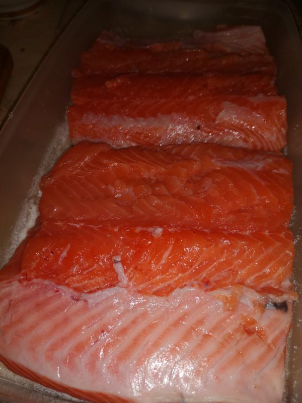 Получаем два таких вот соблазнительных куска. Обвалка выполнега не идеально, но и я с разделкой рыбы сталкиваюсь редко)
