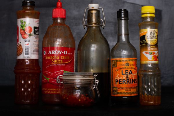 Так же стоит вооружиться любимыми соусами. Если вдруг есть сальса, или вы готовы заморочиться с гуакамоле - отлично, но если вы не ревнитель традиций, а хотите вкусно поесть как мы - берите любые соусы. Кстати, даже те, которые не рекомендуется нагревать: мы добавим их в самом конце, к уже готовому блюду. У меня такие, у вас может обнаружиться кардинально иной набор.