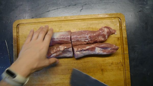 У нас было полтора килограмма вырезки, свиной и говяжей, порубленных в фарш. Вернее, вырезка у нас свиная и телячья - говяжья стоит не тех денег, чтоб из неё делать фарш. Телячья же и свиная в пересчёте на чистое мясо, за вычетом жилок и жира вполне недороги.