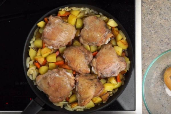 Курица с картошкой на сковороде с мёдом и соевым соусом – это блюдо, которое может напомнить классическую тушёную картошку с мясом... Но только по виду!