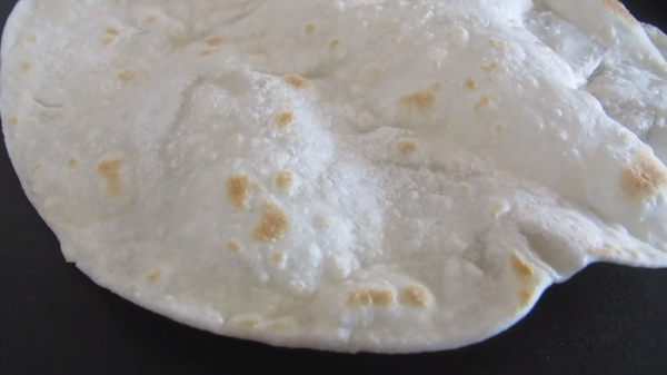 Раскатываем сдвоенные заготовки в тонкие лепешки. Обжариваем на сухой сковороде с двух сторон. Лепешки подрумянятся и будут надуваться