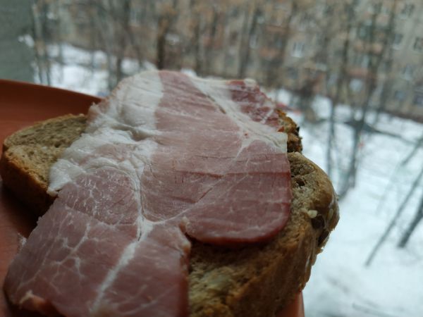 Как мясо сварилось, оставил его охлаждаться, результат на первом фото. Потом (температура на улице позволила) подкоптил холодным дымом его пару часиков (больше не выдержал, косячная коптильня у меня), результатом оказался дико доволен, сточил за пару дней все. В принципе и без копчения результат крутотецкий. Следующий кусок побольше засолил на выходных.