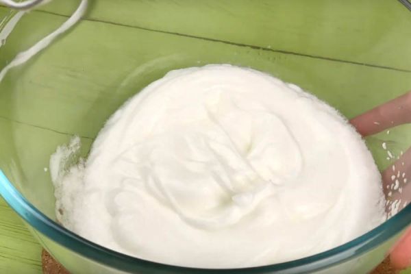 Взбиваем белки с щепоткой соли до устойчивых пиков, на максимальных оборотах.