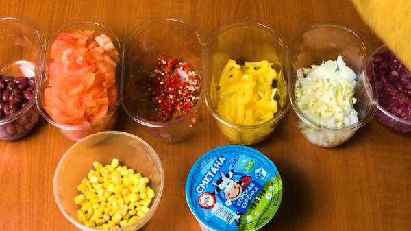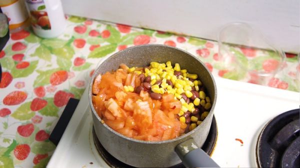 Закидываем фасоль и кукурузу, все хорошенько перемешиваем