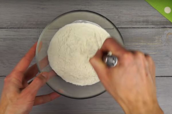 Муку и разрыхлитель соединить и хорошо перемешать. Отставить.