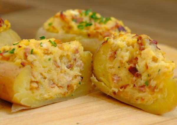 7. Нафаршировать картофель и отправить запекаться на 10 минут при температуре 200 градусов.
