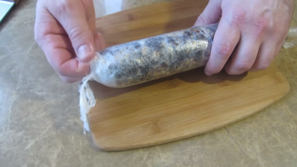 Формируем плотную колбаску. Отправляем в холодильник на 5-6 часов. Если хотите ускорить процесс, уберите шоколадную колбасу в морозильную камеру, хватит пары часов.