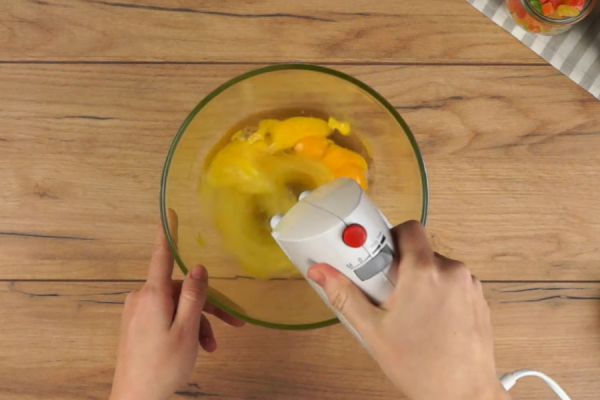 Для теста возьмите 5 яиц, взбейте их с щепоткой соли.