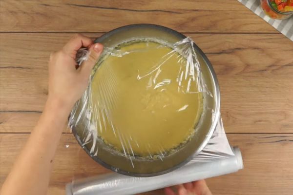 Тесто для куличей накройте пищевой пленкой и поставьте в холодильник на 1 час.