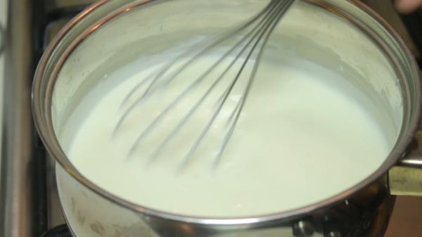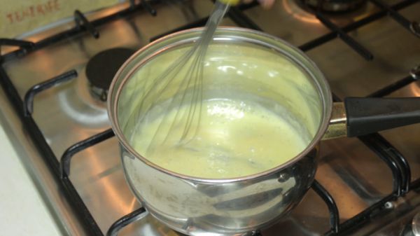 Доводим смесь до кипения и добавляем соль. Продолжаем готовить соус на медленном огне, постоянно его помешивая.