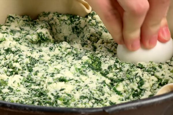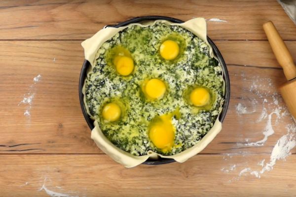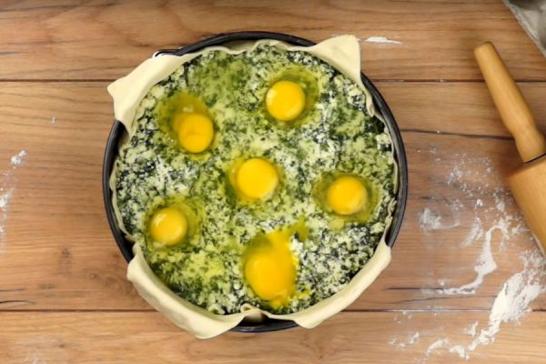 Пасхальный пирог с яйцами, сыром и шпинатом станет настоящим украшением праздничного стола! Совсем немного усилий и красивый, сытный пирог готов — он хорош, как в теплом, так и в холодном виде. Его можно готовить заранее — настоявшийся он становится только вкуснее, а разрез будет более четким и нарядным (желтые яйца на фоне зеленого шпината)!