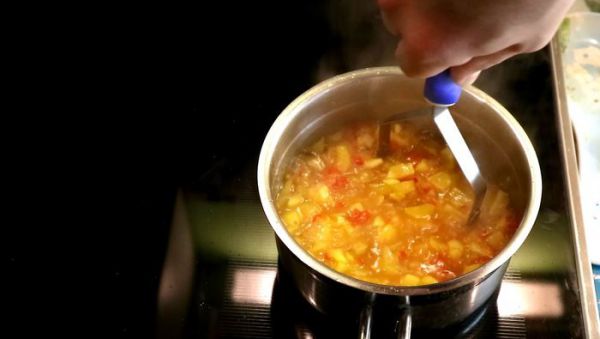 Весь соус немного помните толкучкой (что бы размять манго), если куски еще твердые даем еще потушиться (под крышкой). Как манго будет готово доводим (выпариваем) соус до густоты.