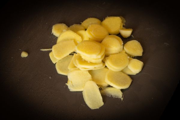 Вот тут сразу отметим, почему не указывали, сколько имбиря брать. Сколько в этом корне есть - столько и брать! Регулируем могучесть не имбирем, а куда более гуманной водичкой. Горячей. Ну то есть пользуемся имбирём как заваркой.