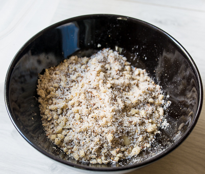 Густо обсыпаем смесью корейку — прямо прижимаем ее руками к мясу.