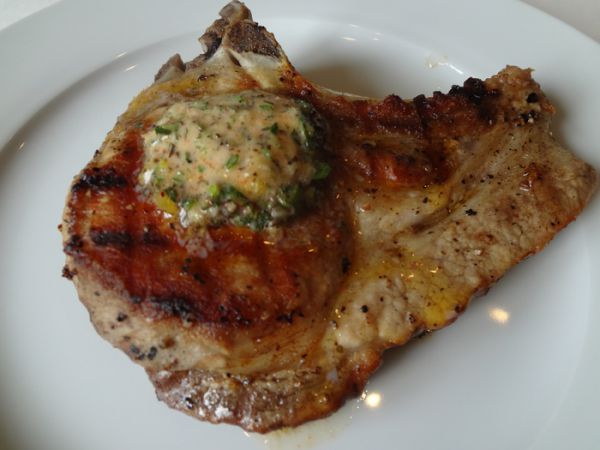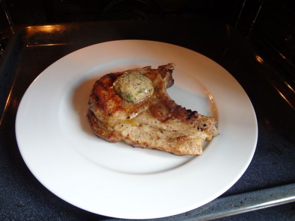 Берем свиной "стейк" из свиного краешка 400-450 грамм. Отрезаем от него сало. Солим, перчим по вкусу, обжариваем с двух сторон на сильном огне по 3 минуты. И отправляем в разогретую духовку 180 градусов на 10 минут, доходить. Примерно за 1 минуту до готовности стека, достаем нашу колбаску. Отрезаем от нее таблетку, кладем в духовку на наше мясо. Таблетка должна растаять, придав нашему мясу неповторимый вкус.