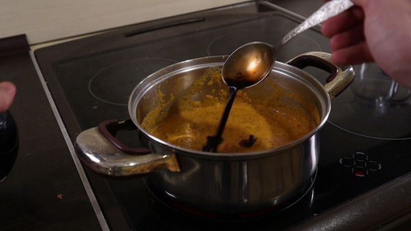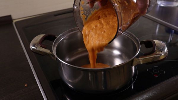 Перемолотую смесь выливаем в кастрюлю с толстым дном.