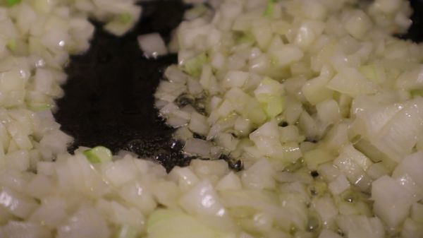 В это-же масло закидываем лучок и обжариваем, пока лук не станет слегка прозрачным.