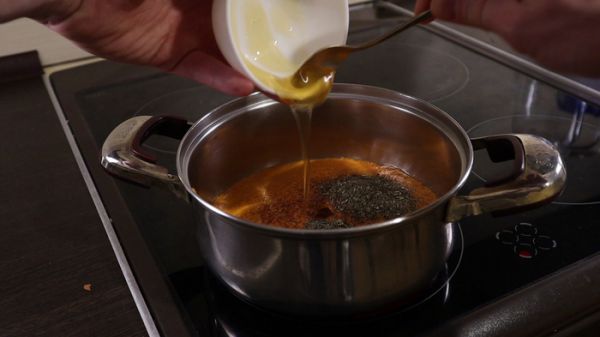 Попробуйте соус на вкус, хватает ли соли и остальных специй. В идеале он должен получится слегка кисло-сладким за счет меда и уксуса.