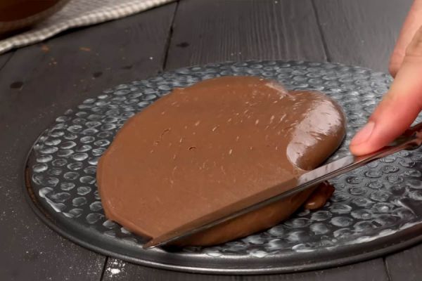 Вынуть из духовки и срезать готовый корж острым ножом.
