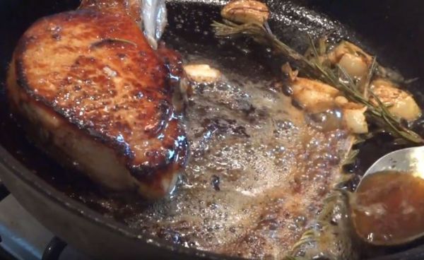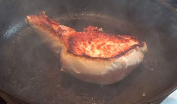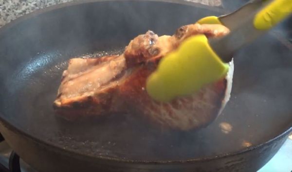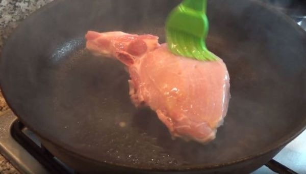 Свинина это не говядина и её НЕЛЬЗЯ употреблять в разных степенях прожарки, поэтому перед нами стоит задача, прожарить её до полной готовности "well done". Можно просто обжарить мясо по 3 минуты с каждой стороны и убрать в духовку на 7 минут при температуре 190 градусов, но я сделал иначе.