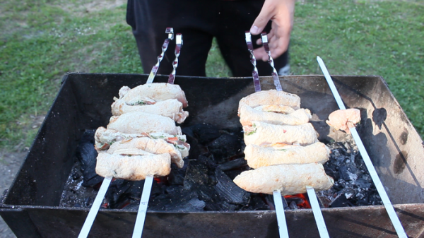 Сворачиваем в рулетики, посыпаем сверху солью и перцем. А дальше на природу, к мангалу.
