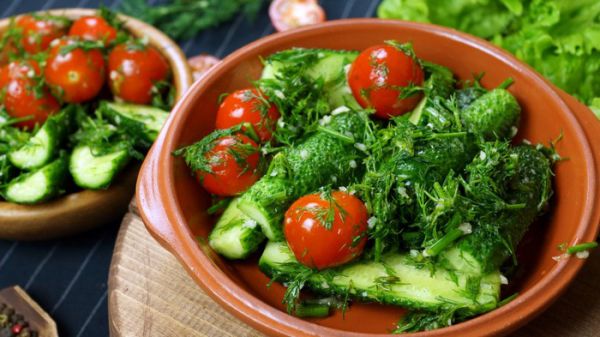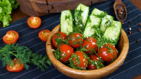 Как приготовить малосольные огурцы и помидоры, сделав при этом их хрустящими и вкусными?! Готовится такое блюдо быстро и с минимум ингредиентов. Поможет разнообразить дешево и сердито любые шашлычные посиделки. Результат вкуса этой закуски настолько нам нравится, что мы решили поделиться им с вами.