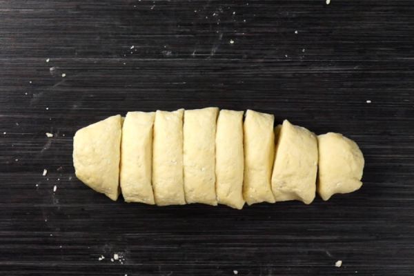 Тесто разделим на 8 одинаковых частей и раскатам каждую в лепешку.