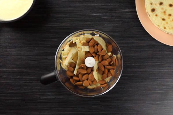 Приготовим посылку для торта из жареного миндаля и обрезков остатков коржей.