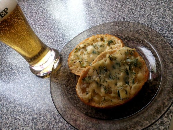 Отличная закуска как к напиткам пенным, так и к чаям/кофеям/супам. Получается эдакий двусторонний бутерброд.