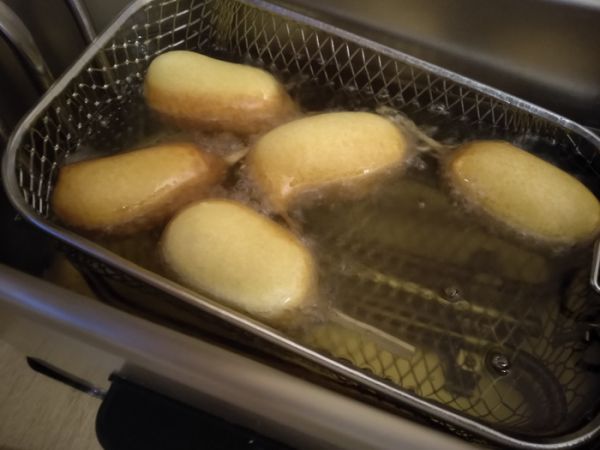 Жарим во фритюре, по несколько минут с каждой стороны, до золотистого цвета.