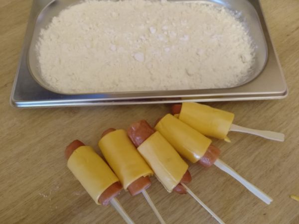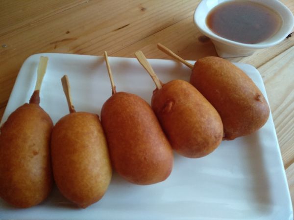 Корн дог (Corn dog) - колбаска или сосиска, покрытая слоем кукурузного теста и жаренная во фритюре. Корн Дог был изобретен в США в конце 30-х, начале 40-х годов. Известные вариации с сыром и мини корн доги, которые особенно популярны у детей.