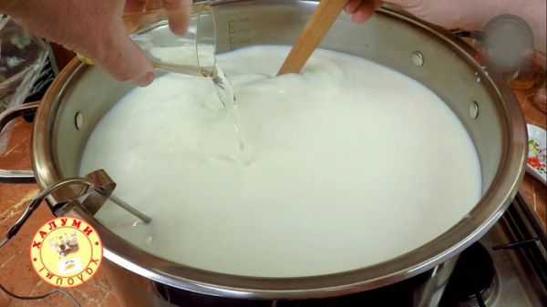 Приготовление:Нагрейте молоко на медленном огне до 32ºС, слегка помешивая по кругу шумовкой.Разведите хлористый кальций в 50 мл тёплой воды и внесите в молоко. Разведите сычужный фермент в 30-50 мл воды за 10 минут до внесения в молоко.Влейте раствор сычужного фермента в молоко, помешивая шумовкой, чтобы равномерно распределить его по всему объему.Накройте кастрюлю крышкой и оставьте в покое на 30-40 минут. За это время должен образоваться сгусток.если сгусток будет недостаточно плотным, то подождите еще 10-15 минут.Нарежьте сгусток на кубики с помощью ножа или шампура и оставьте в покое на 5-10 минут, чтобы отделилась сыворотка и сырное зерно осело на дно.Включите огонь и медленно нагревайте сырную массу в течение 15-ти минут до 38ºС, вымешивая с помощью шумовки по кругу.Затем выключите огонь и еще 15 минут вымешивайте сырное зерно, за это время оно уменьшится в размерах и отдаст большую часть сыворотки.После этого накройте кастрюлю крышкой и оставьте на 5 минут в покое, затем помешайте сырное зерно и оставьте еще на 5 минут.Слейте сыворотку до уровня зерна, затем разложите сыр по формам, немного приминая руками. Для этой цели очень хорошо подходят формы диаметром 10-12 см.Оптимальная высота сырного пласта - 5-6 см, но вы можете сделать выше или ниже. Сильно толстый слой делать не стоит, так как потом халлуми будет трудно сгибать.Оставьте сыр самопрессоваться на 5 минут, затем переверните в форме и оставьте еще на 15 минут. Переворачивайте через 15 минут в течение часа.Перелейте слитую ранее сыворотку обратно в кастрюлю для сыроварения и доведите до кипения. Уменьшите огонь так, чтобы сыворотка не бурлила.Выкладывайте сыр в сыворотку. Чтобы сыр не прилипал к кастрюле, можно на дно положить металлическую решетку и периодически помешивать шумовкой.Если вы готовите сыр из коровьего молока, то примерно через 30-40 минут он всплывет, а если из козьего, то через 1,5-2 часа.Далее сыр по очереди нужно вынимать, перекладывать в холодную воду 10-12ºС на 10-20 секунд.Затем сыр нужно на доске слегка примять рукой, посолить по вкусу, посыпать сушеной мятой или положить свежие листочки, согнуть пополам и еще примять рукой.Лучше это делать в резиновых перчатках, так как сыр будет очень горячим.Приготовленный таким образом сыр Халлуми нужно выложить на поднос с отверстиями для оттока жидкости для остывания. Через пару часов можно есть.Но я его оставляю на 2 суток на созревание. Для гриля или жарки режу халуми на кусочки толщиной до 1 см и обжариваю с обеих сторон по 1,5-2 минуты на оливковом масле. Приятного аппетита!