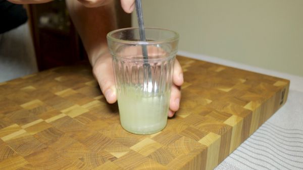 Пока варится рис, приготовим заправку для него. Смешиваем в стакане 30 мл. рисового уксуса, 2 ст.л. сахара и 1 ч.л. соли. Перемешиваем содержимое стакана до полного растворения всех компонентов.