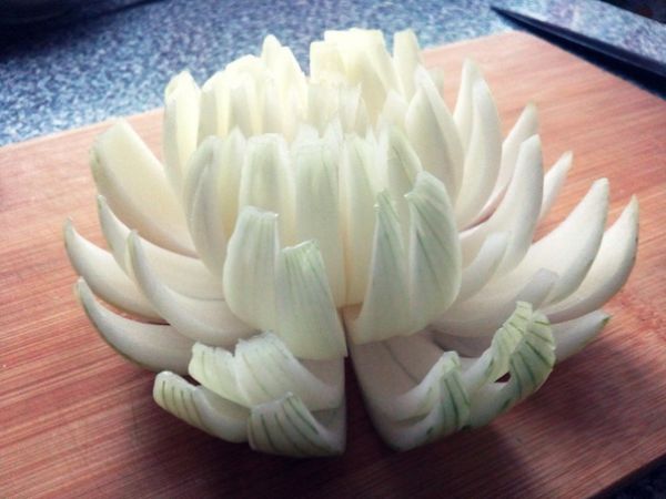 Луковицу перевернуть и разделить получившиеся "лепестки".