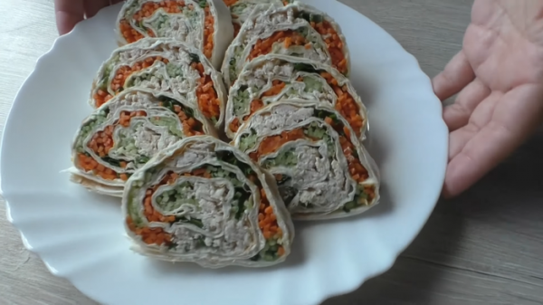 Закуска получается быстро. Рулет вкусный, яркий и ароматный! К тому же очень сытный. Пробуйте на здоровье, готовьте с удовольствием!