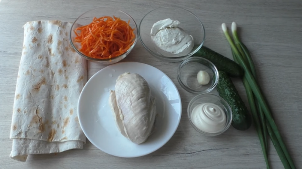 Заранее нужно только отварить куриное мясо или чем нибудь его заменить.