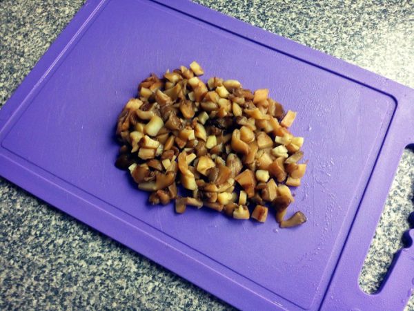 Шампиньоны нарезаем и обжариваем.