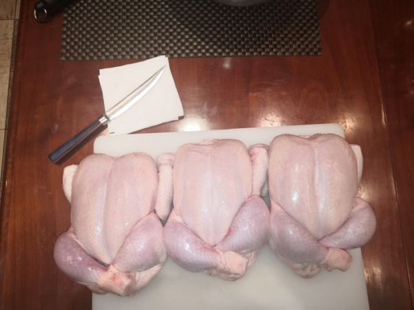 Мясо кур используем вместе с кожей и жиром. Мясорубка не нужна, мясо просто режем ножом на кусочки примерно 1,5х1,5 см.