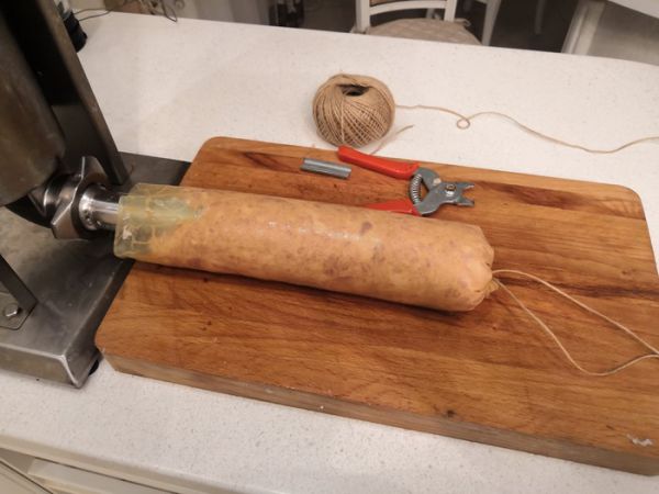 Колбасную оболочку использую любую, например говяжью синюгу, свиные пузыри или искусственную оболочку.