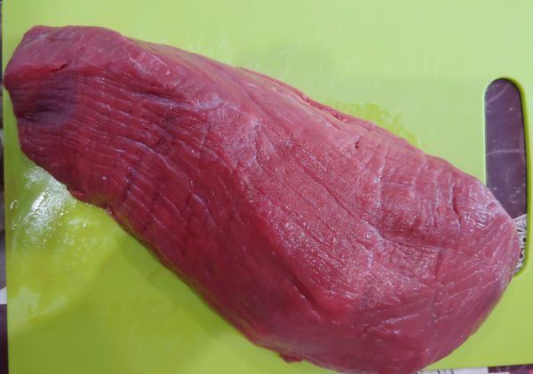 Такой вот кусочек говядины и должен был потенциально превратиться в мое сыровяленое изделие. Говядины я выбрал не самый плохой кусок, ведь в итоге употребляться будет без всякой термообработки. Веса в этом куске оказалось 1,2 кг.