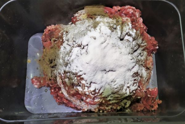 Фарш прокрутил и всё вышеперечисленное добавил в него,