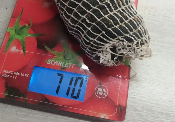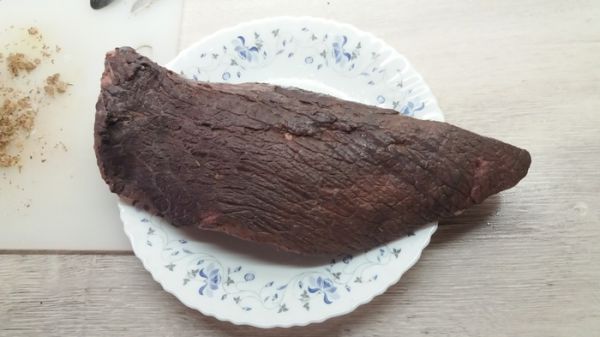 Через 2 недели достаем мясо из холодильника, распаковываем. Мясо потеряло в весе примерно треть.