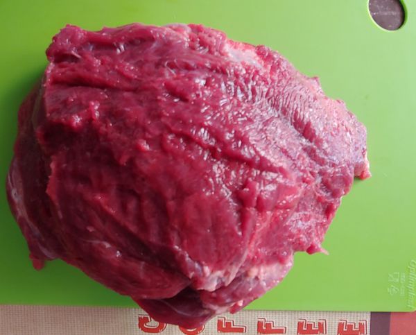 Первым делом мне понадобилось мясо. Если колбаса «Московская», то мясом, конечно, будет говядина. В моем случае это был такой вот кусочек тазобедренной части: